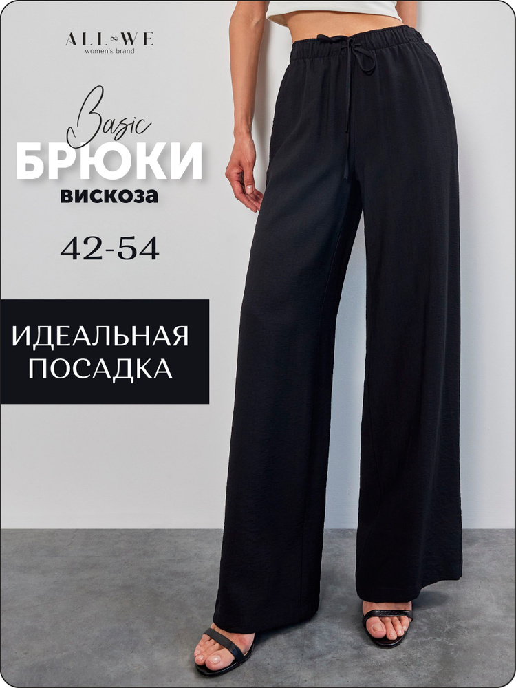 Брюки Женский All We прямые черный Вискоза размер 50 Завязки прямой