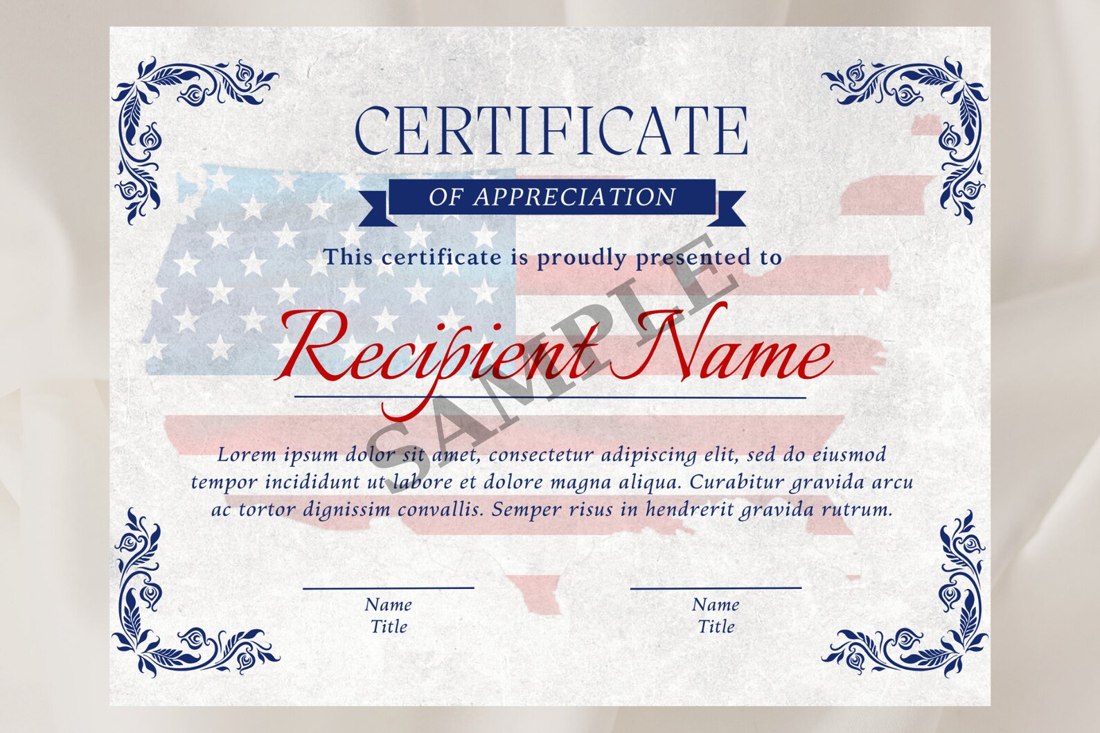 Editable American Flag Appreciation Certificate USA Veteran #39 s