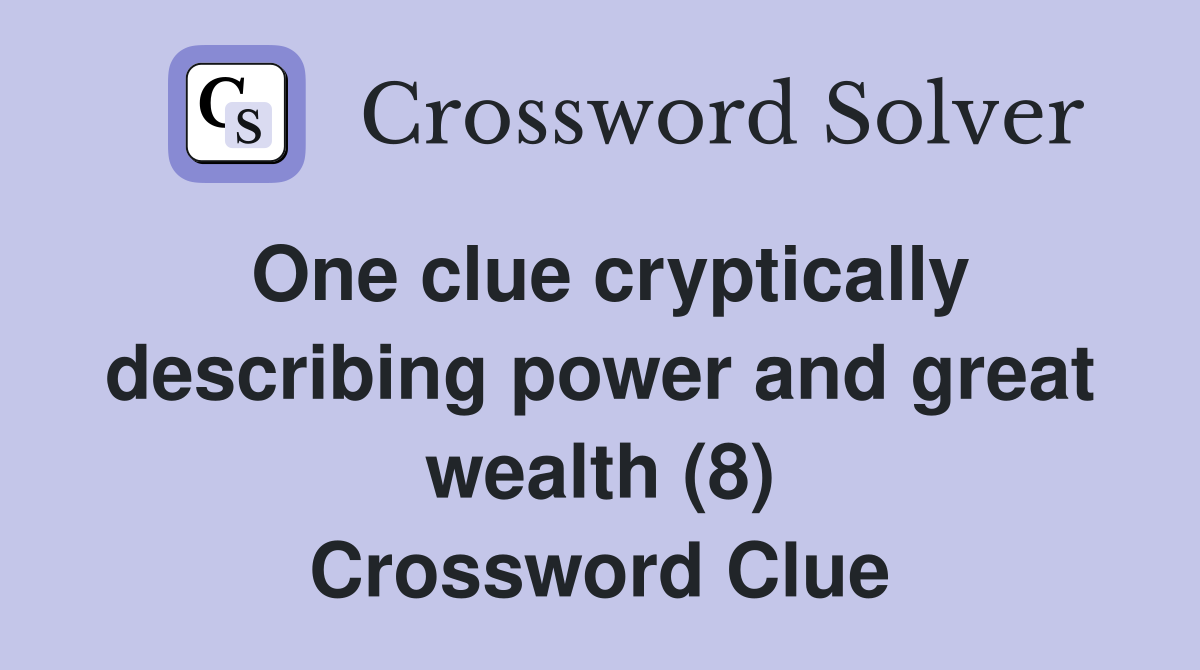 One clue cryptically describing power and great wealth (8) Crossword