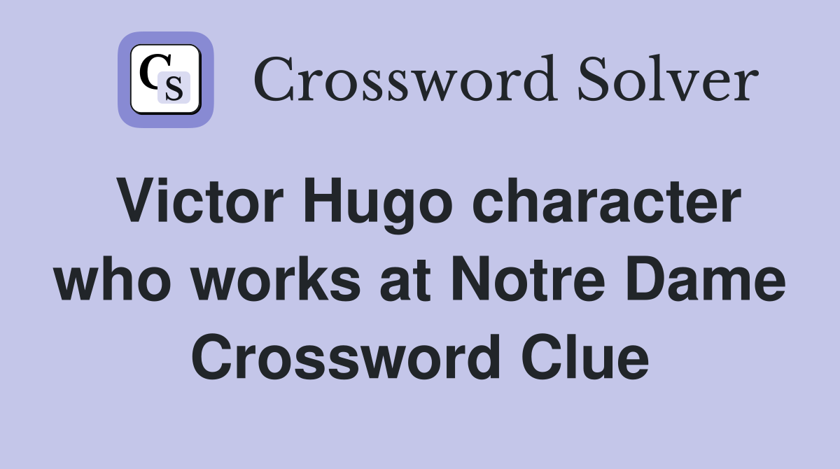 Victor Hugo character who works at Notre Dame Crossword Clue Answers