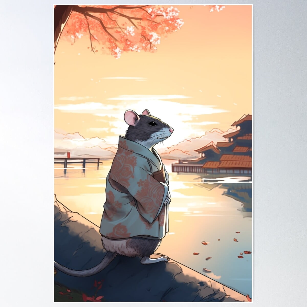 Dopaprint UNFRAMED PAPER POSTER Peaceful Mouse Wearing A Kimono Poster