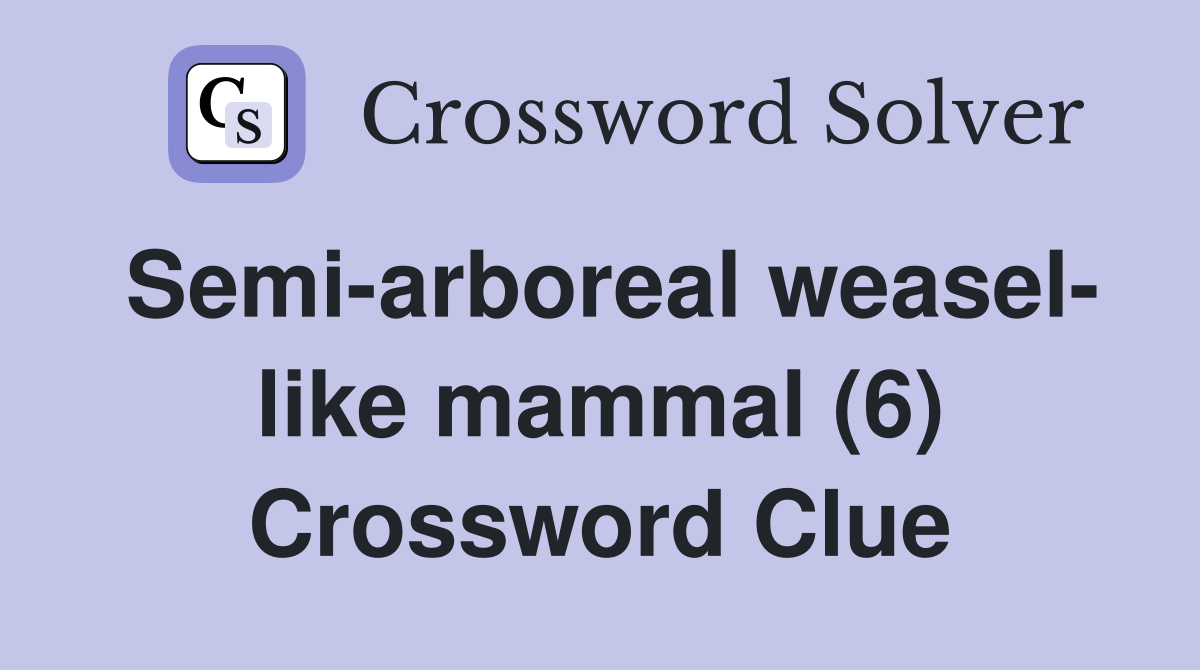 Semi arboreal weasel like mammal (6) Crossword Clue Answers