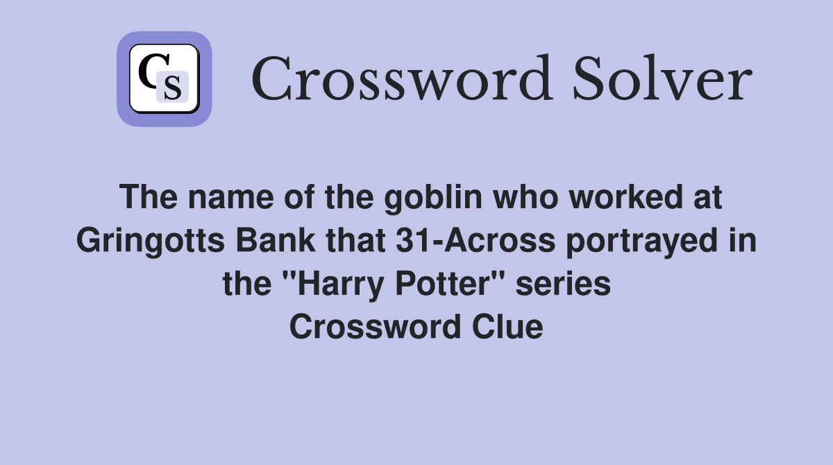 The name of the goblin who worked at Gringotts Bank that 31 Across