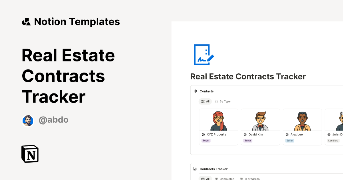 Real Estate Contracts Tracker Template by Abdo Karmalla Notion