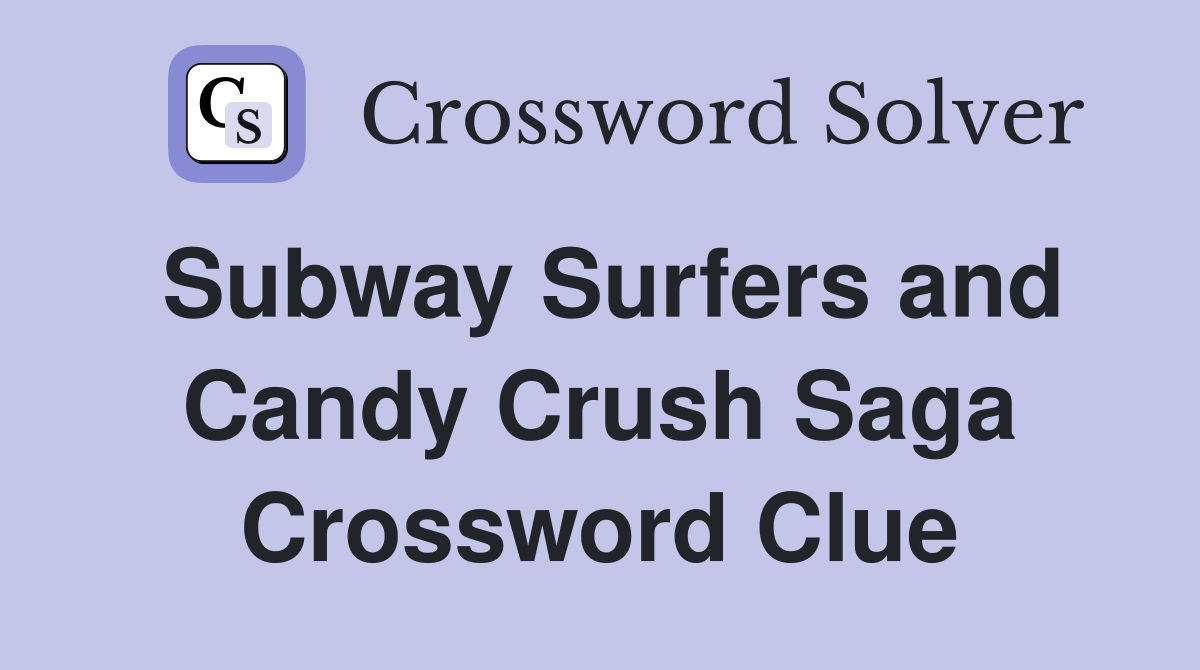 Subway Surfers and Candy Crush Saga Crossword Clue Answers
