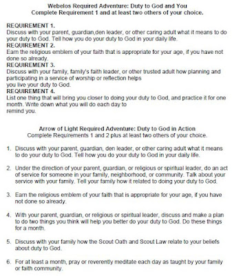 Webelos Duty to God and You Adventure Requirements Boy scout Cub