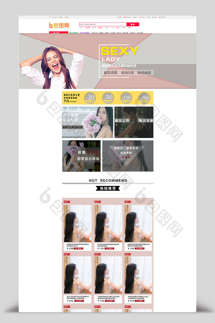 淘宝天猫欧美风女装睡衣店铺首页装修 包图网