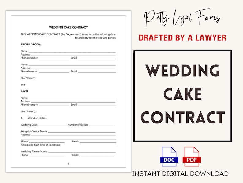 Editable Wedding Cake Contract Template Wedding Cake Etsy