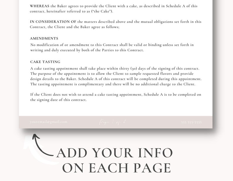 Wedding Cake Contract Template Edit in Canva Contract for Baker