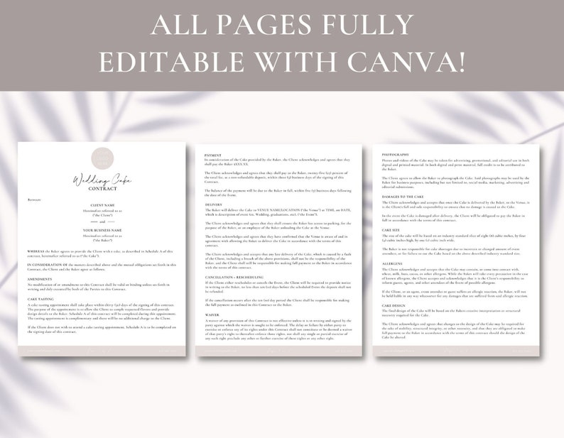 Wedding Cake Contract Template Edit in Canva Contract for Etsy Canada