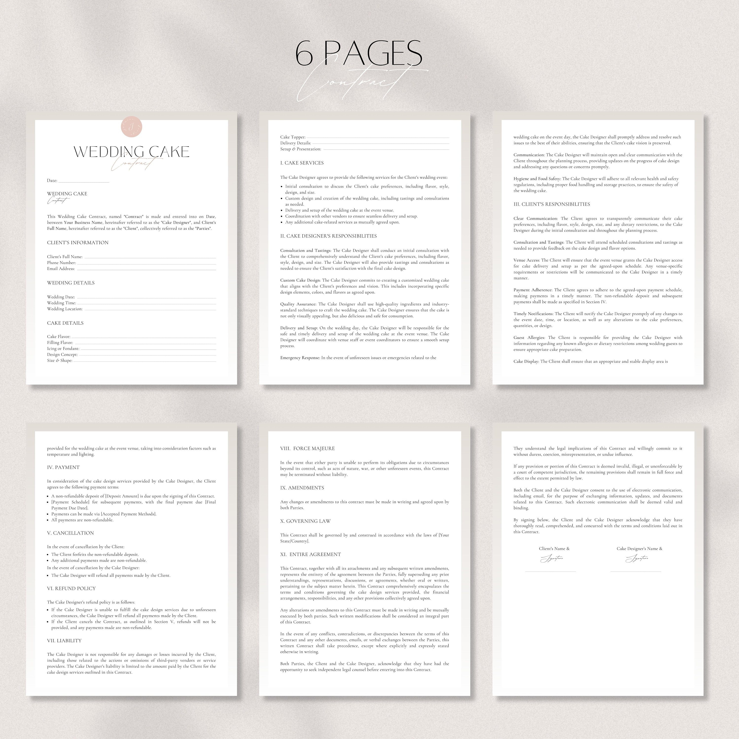 Cake Contract Printable PDF Editable Canva Template Wedding Cake