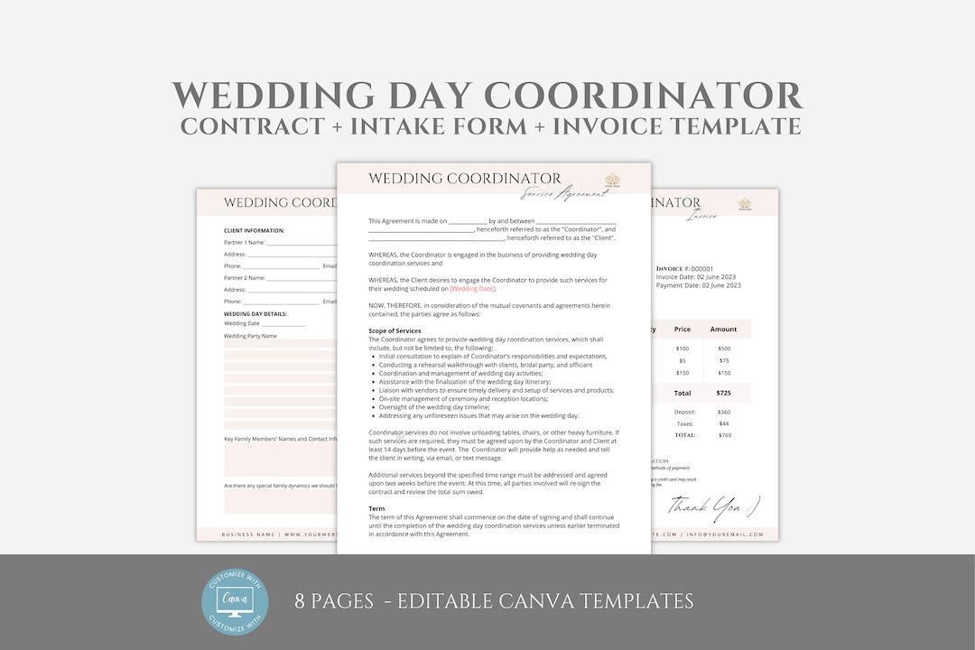 Wedding Coordinator Contract Template Invoice Welcome Letter Etsy