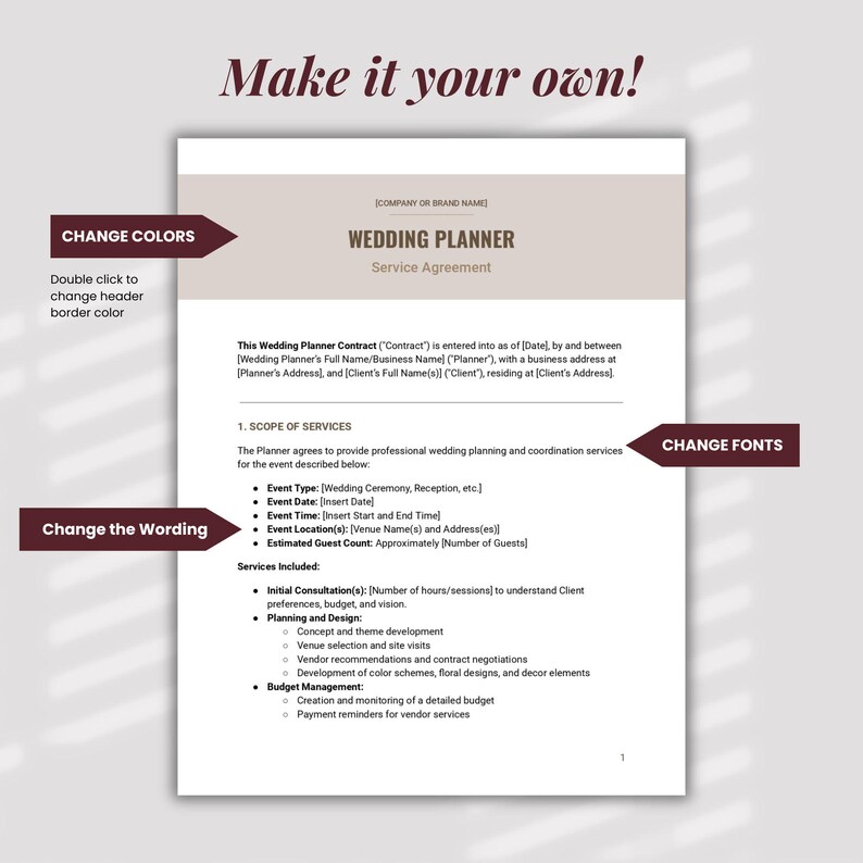 Wedding Coordinator Contract Template Invoice Welcome Letter Editable