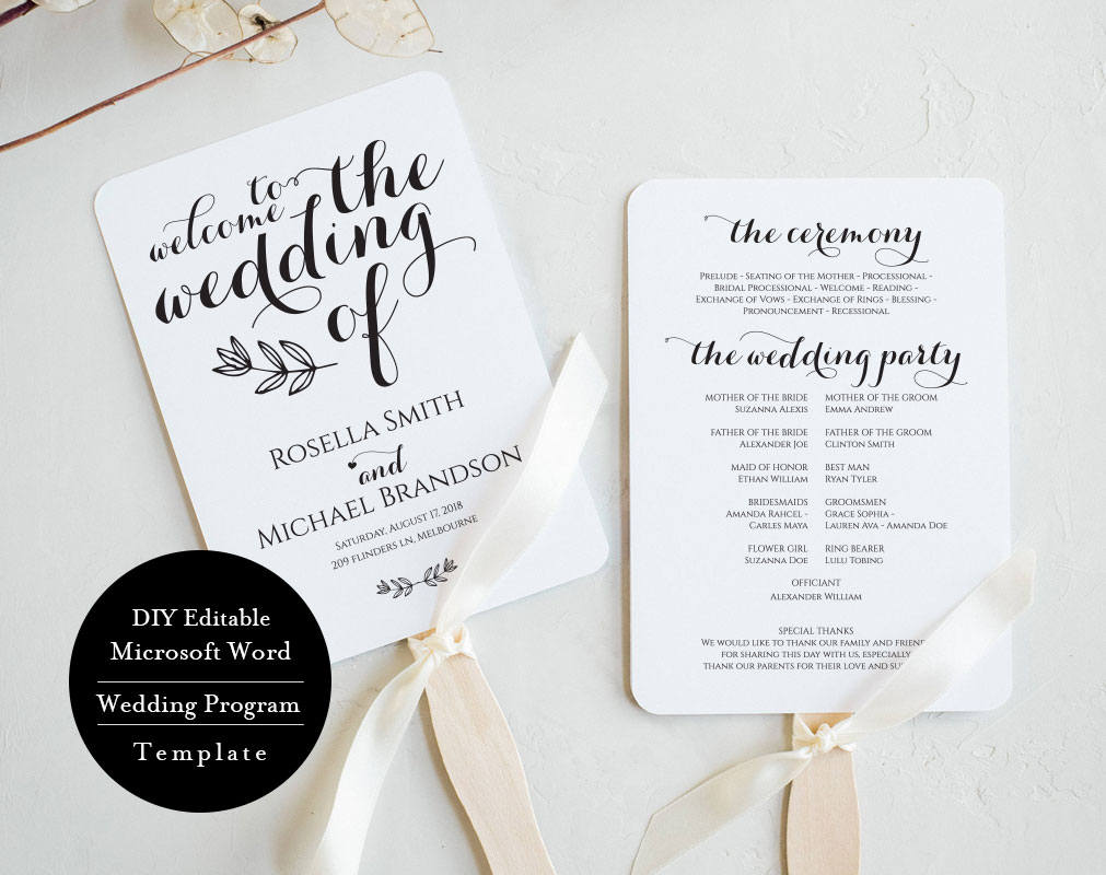 Wedding Program Template Fan Wedding Program Template Modern Etsy