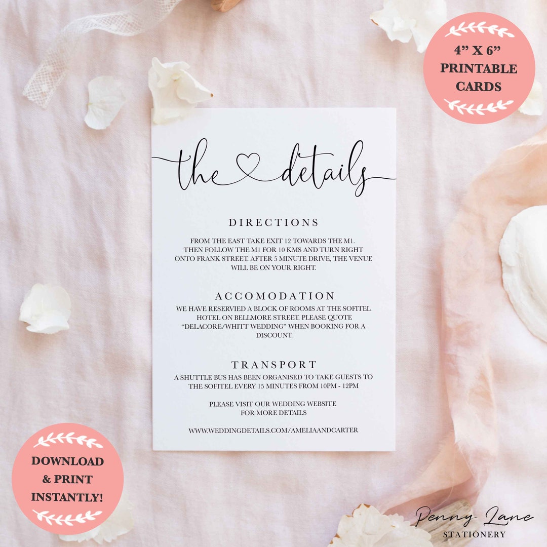 Downloadable Wedding Details Card Template Printable Wedding Etsy