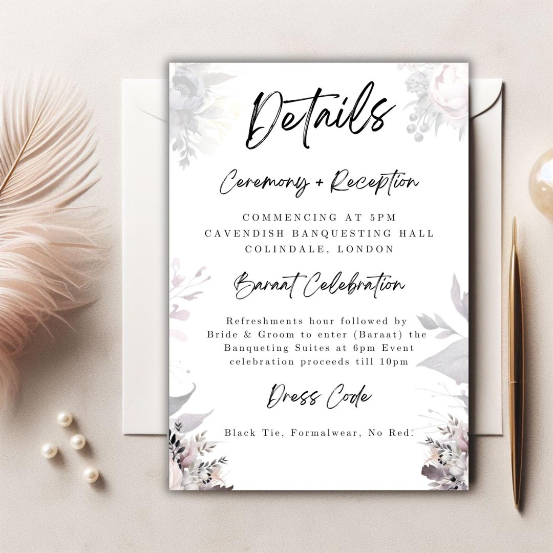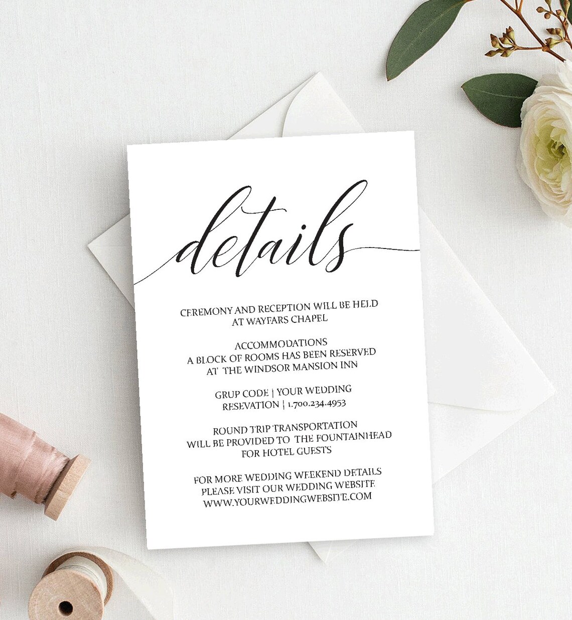 Modern Wedding Details Card Template Custom Elegant Wedding Stationery