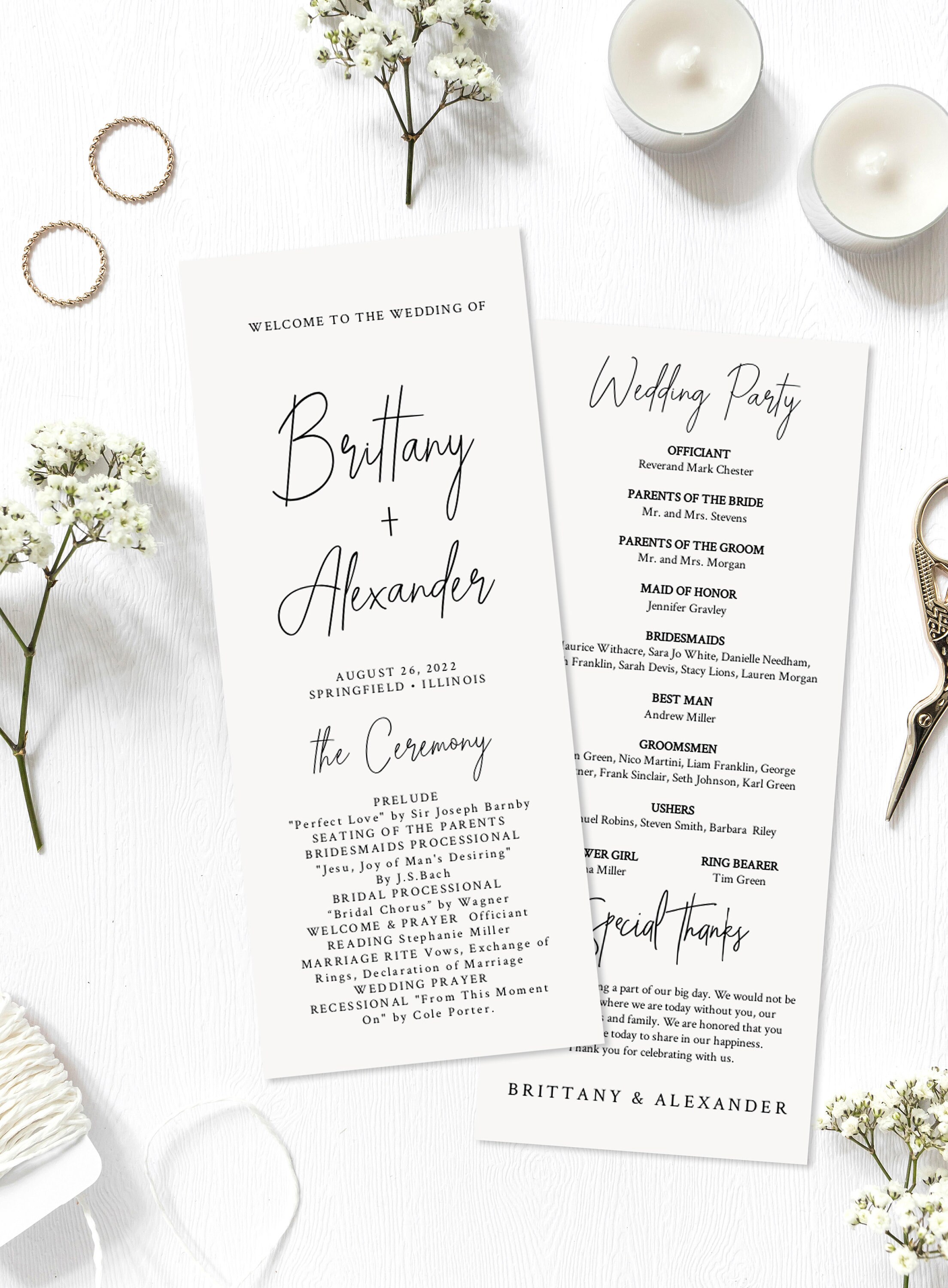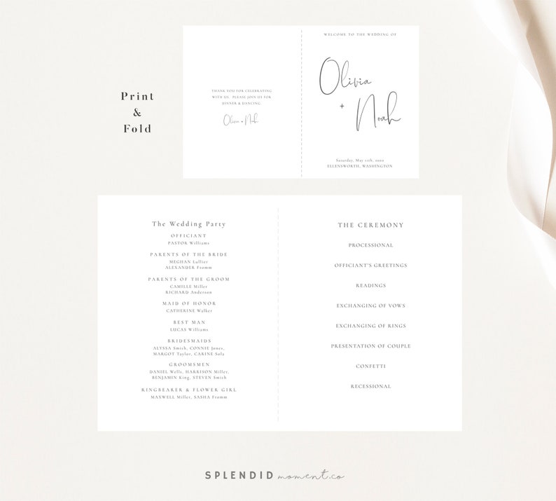 Minimalist Wedding Program Template Folded Wedding Ceremony Etsy