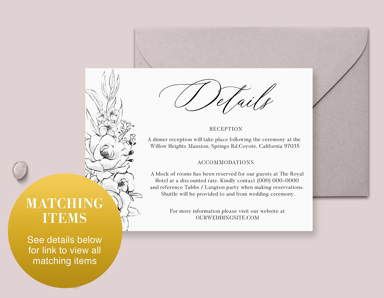 Wedding Details Card Printable Instant Download Wedding Card Custom