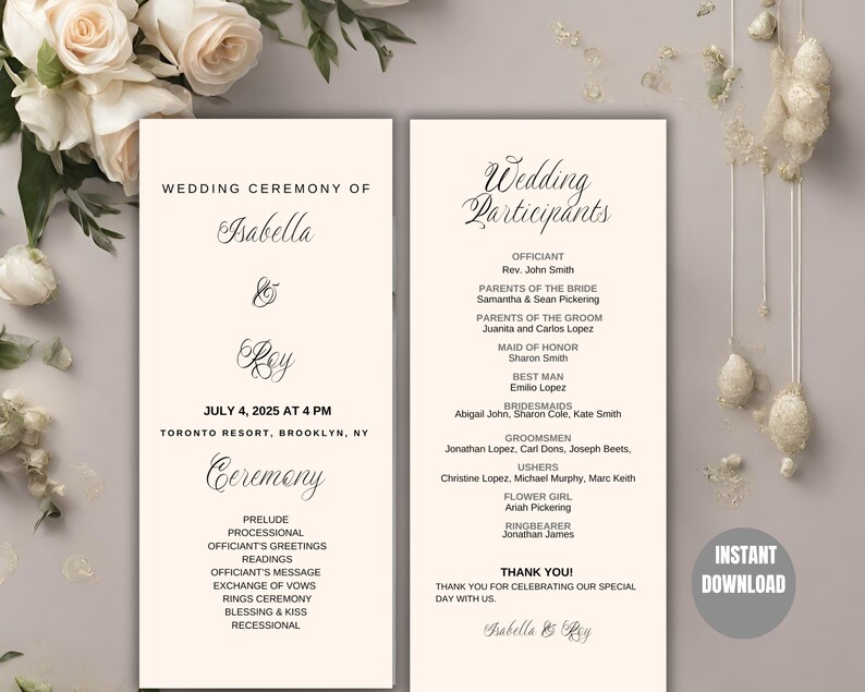 Wedding Ceremony Program Template Editable Script Wedding Program