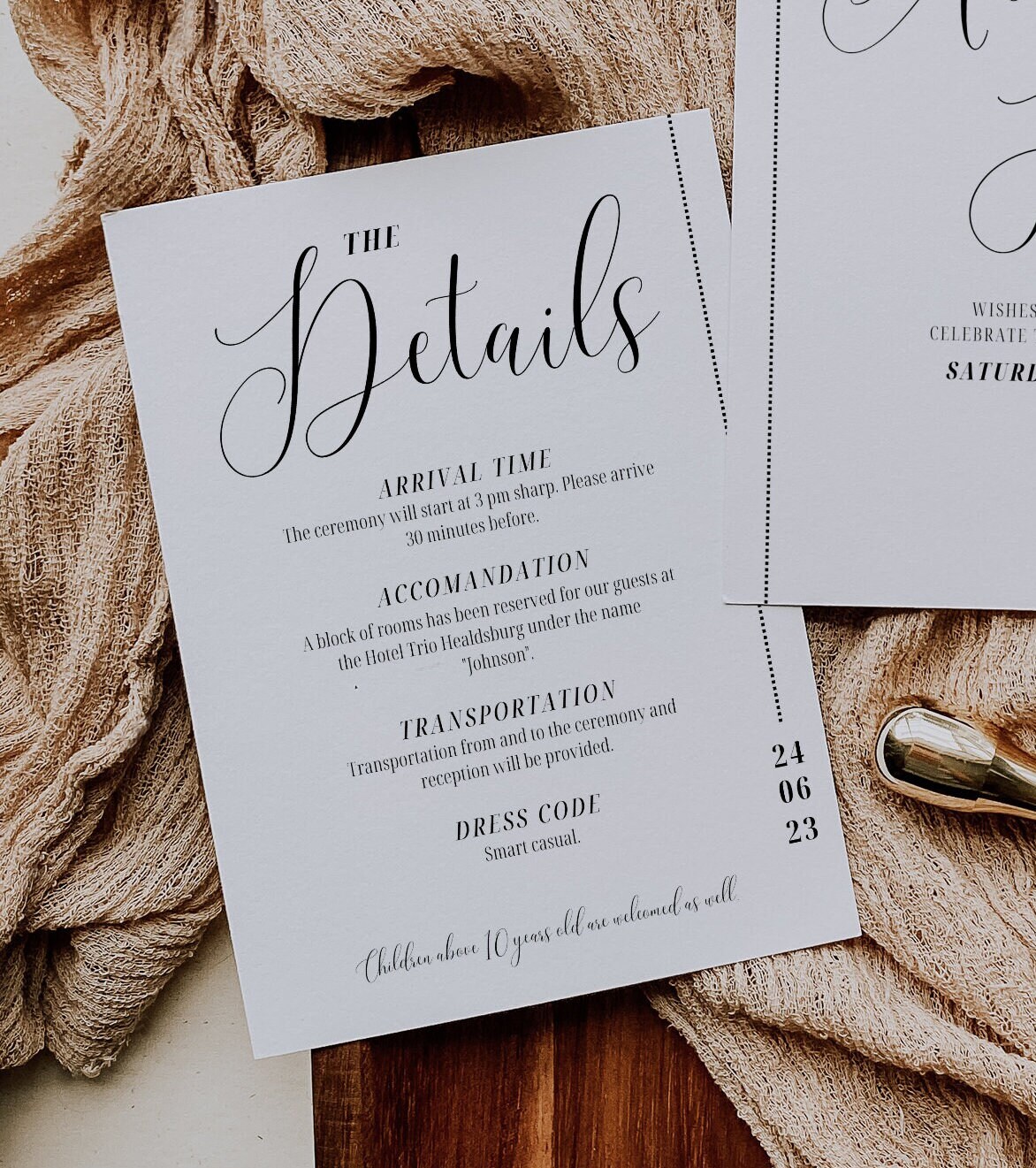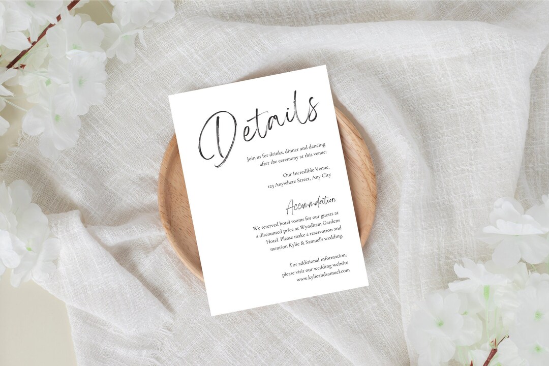 Elegant Wedding Details Card Template Calligraphy Wedding Details Card