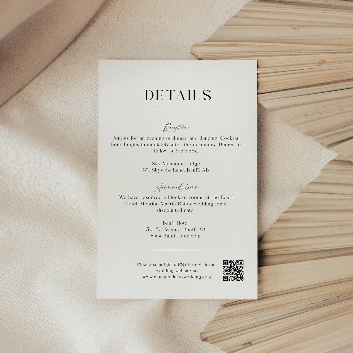 Minimal Wedding Details Card Details Card With QR Code Etsy