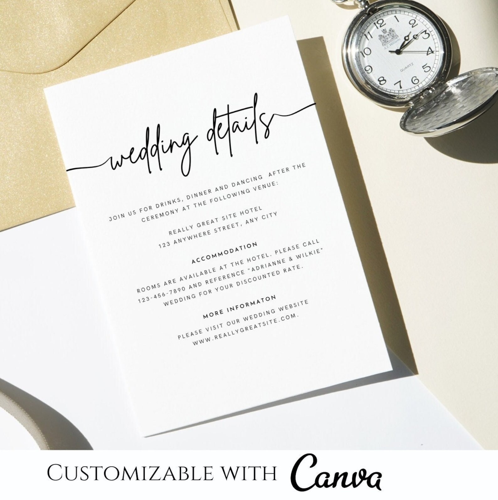 Wedding Details Card Template Printable Details Card Wedding Etsy