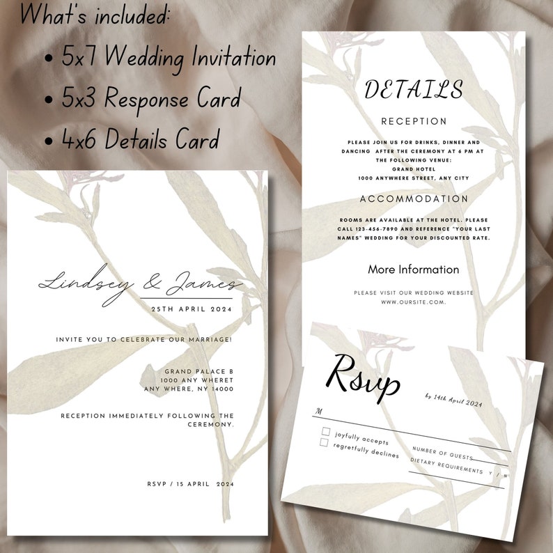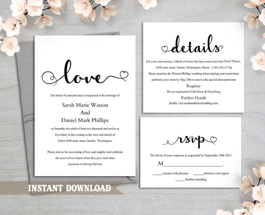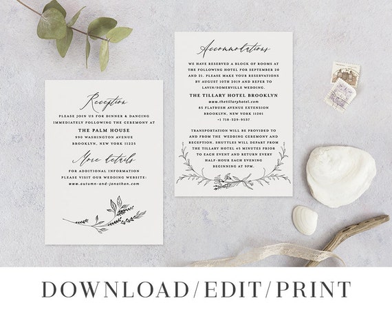 EDITABLE PDF Wedding Details Card Invitation Suite Invite Etsy