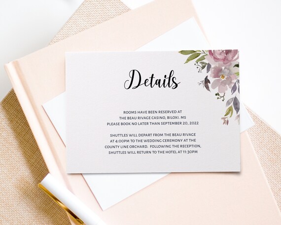 Wedding Details Cards Template DIY Editable Wedding Etsy
