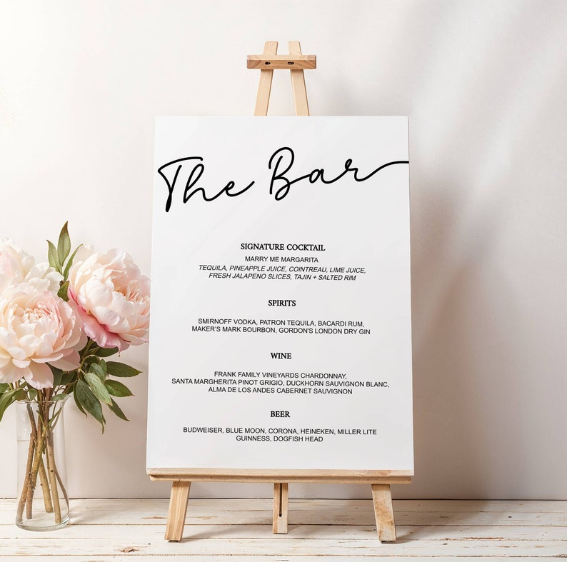 Printable Bar Sign Wedding Drink Menu Template Minimalist Wedding Bar