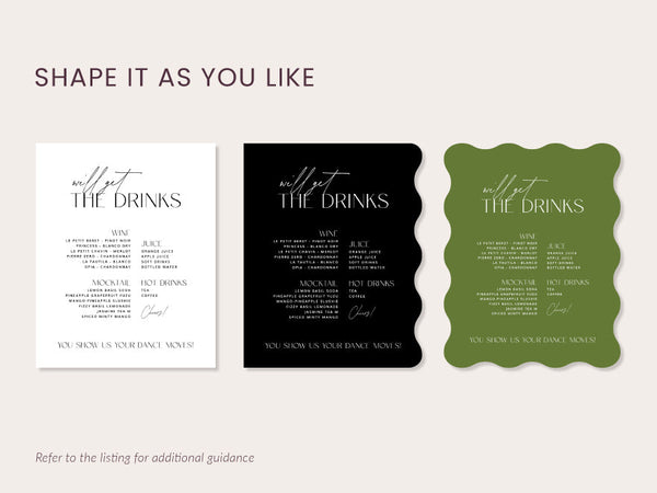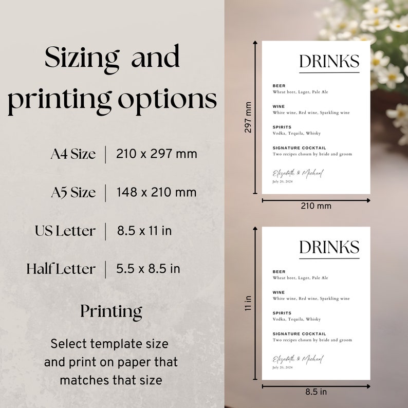 Editable Minimal Wedding Drink Menu Template Instant Download