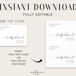 Printable Calligraphy Envelope Return Address Template Minimal Wedding