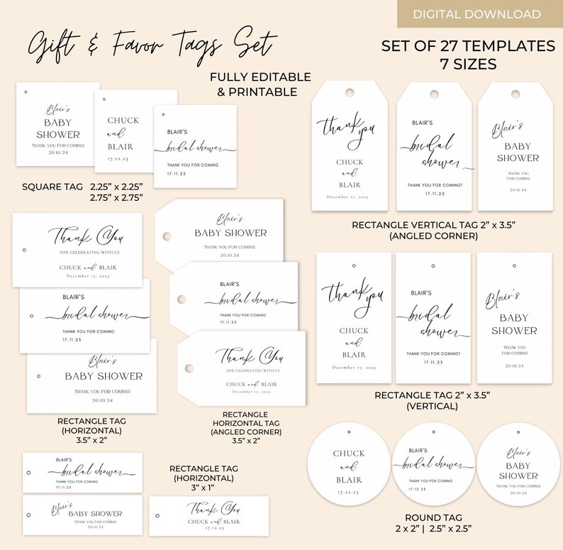 Editable Wedding Favor Tags Template Canva Printable Gift Tags Set