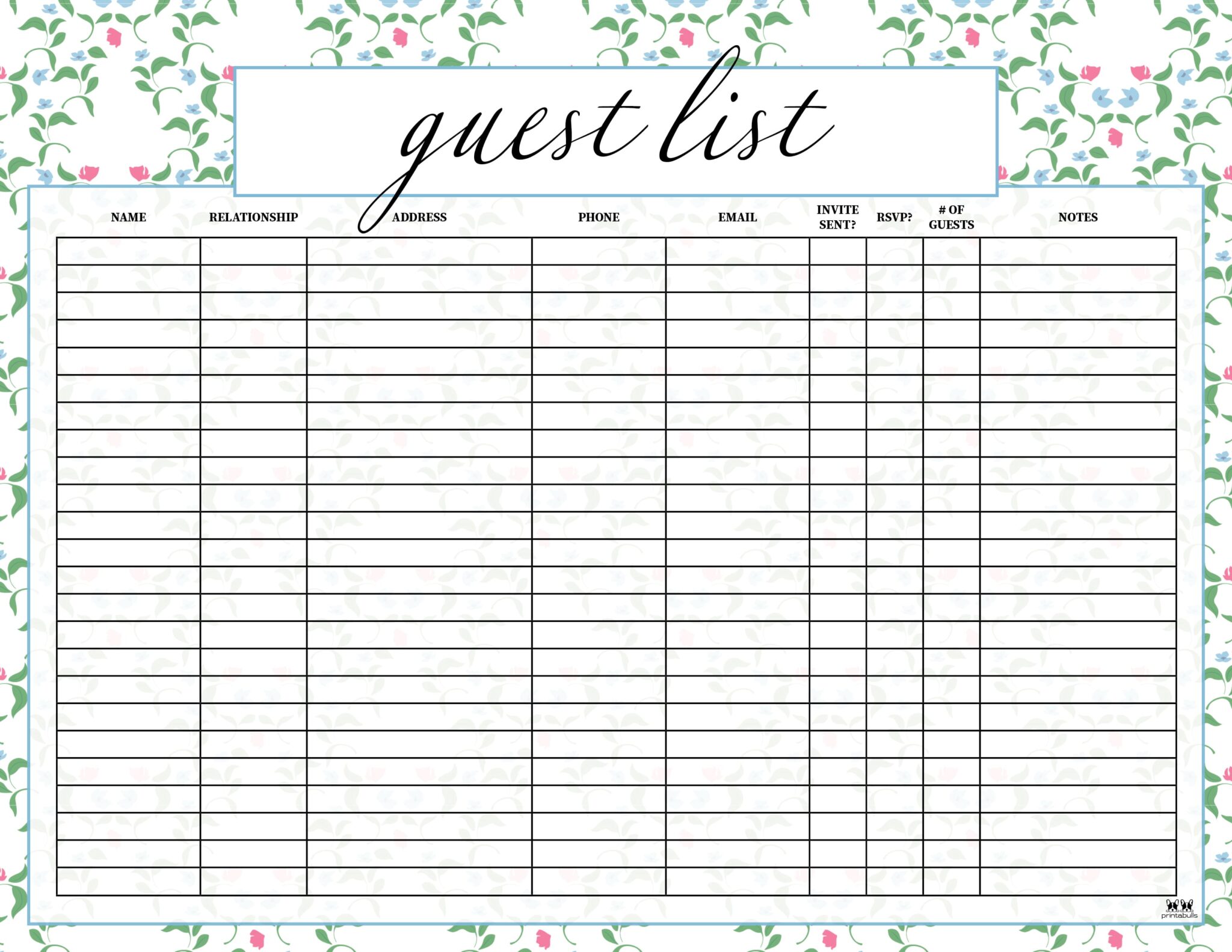 Here are some of the images for Wedding Guest List Printable that we found in our website database.