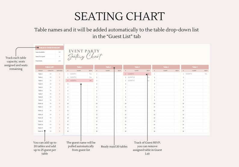 Wedding Guest List Planner and Guest List Tracker Excel Spreadsheet