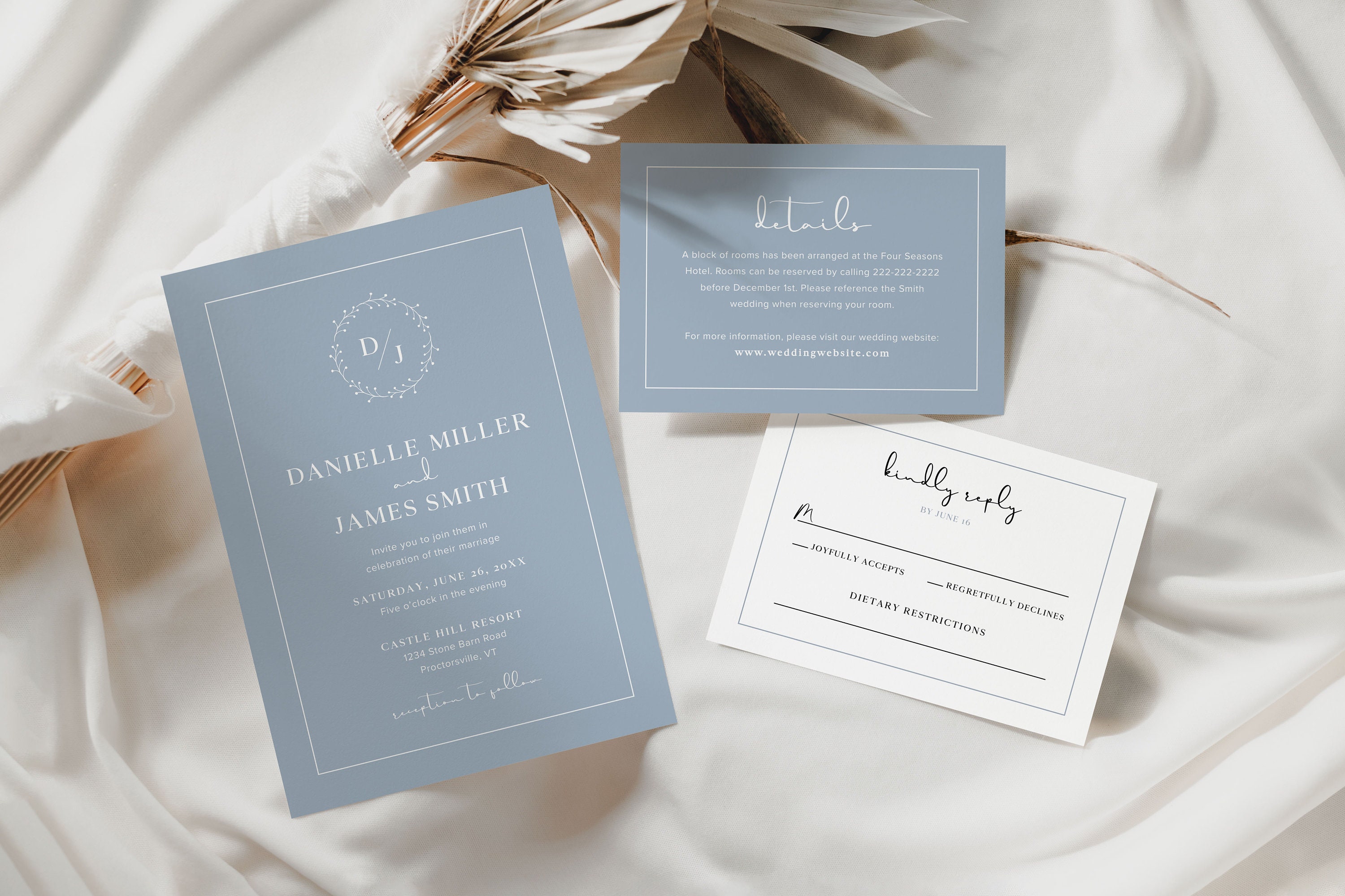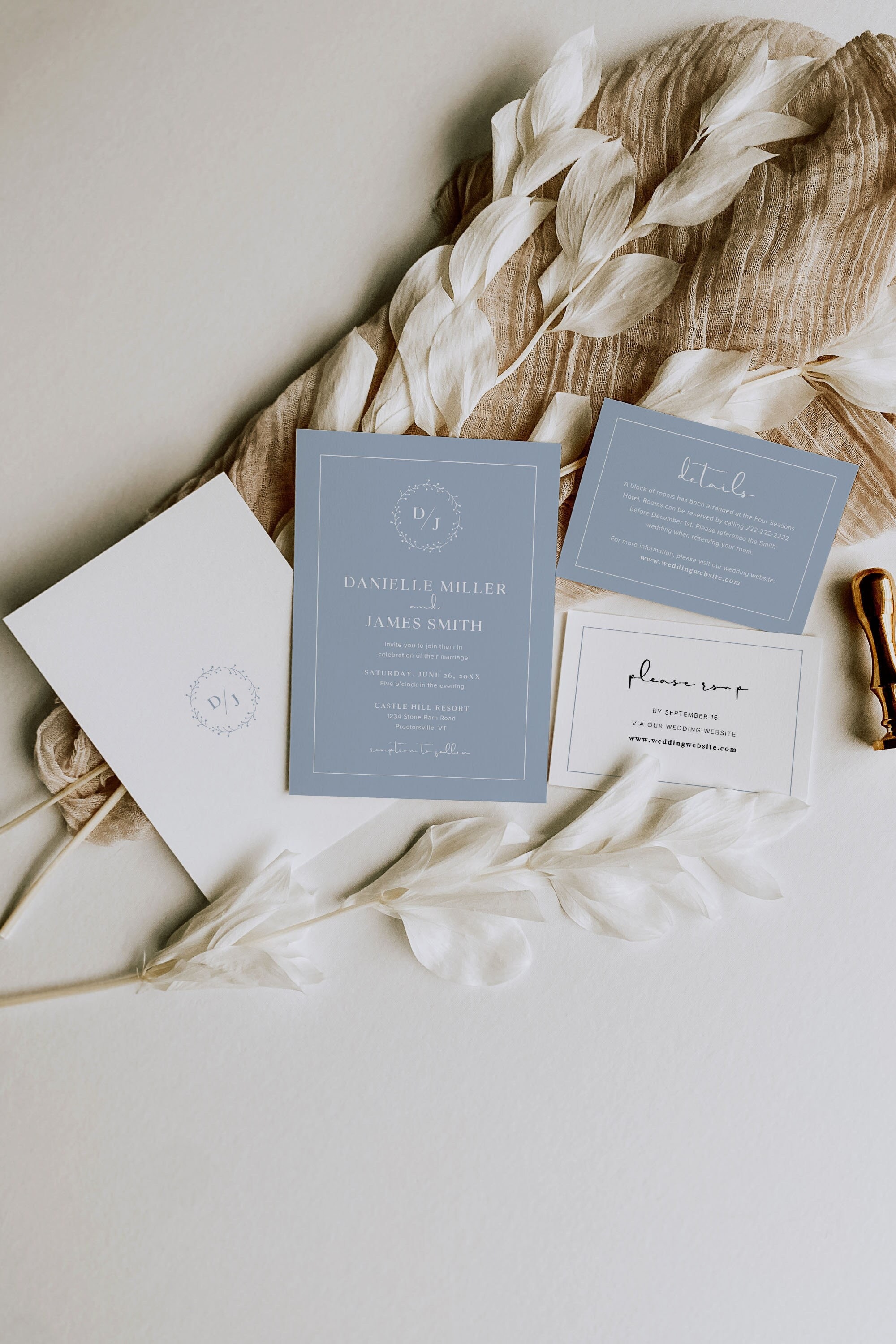 Dusty Blue Wedding Invitation Suite Templates Blue Wedding Minimalist
