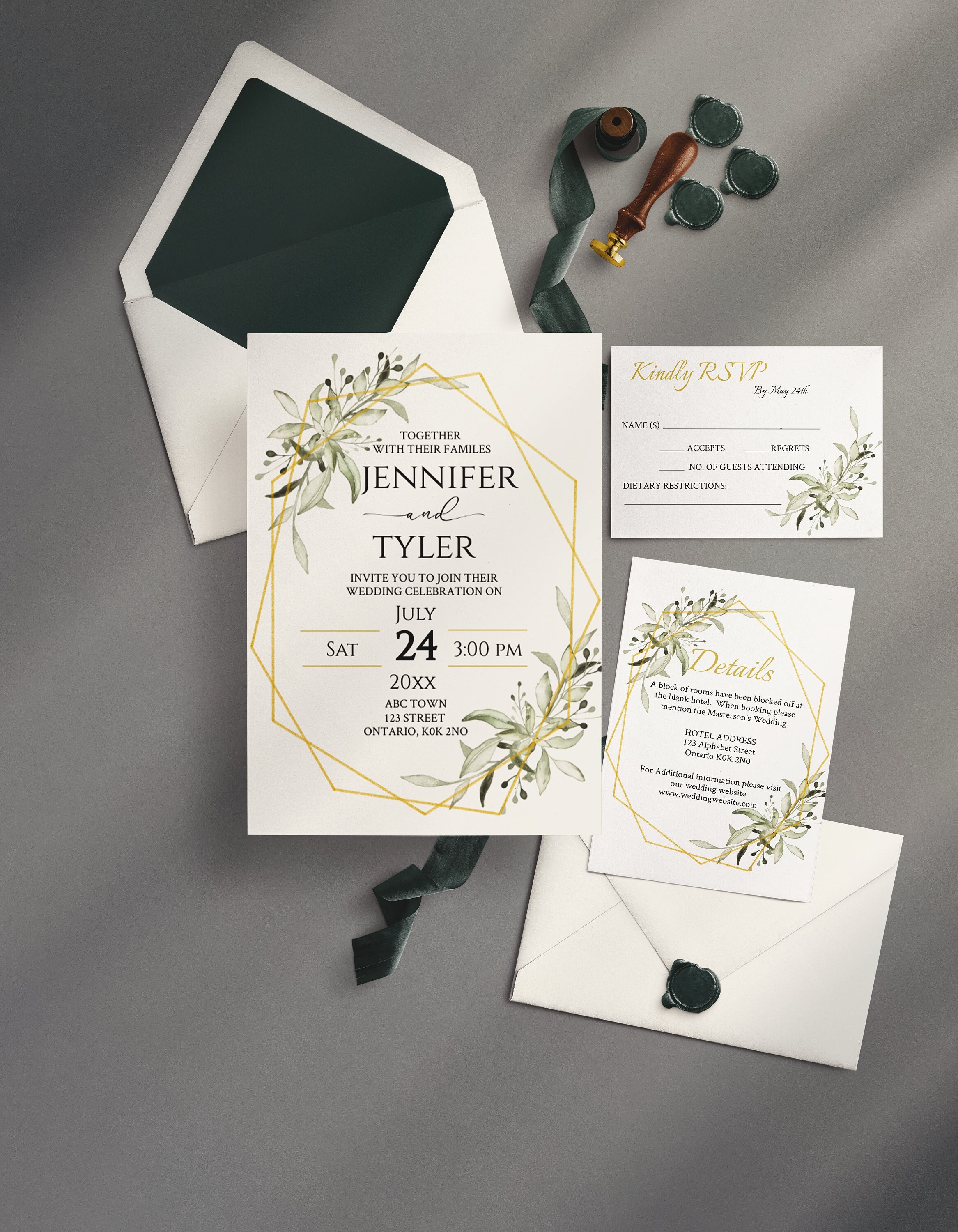 Simple Minimalist Wedding Invitation Suite Templates 100% Customizable