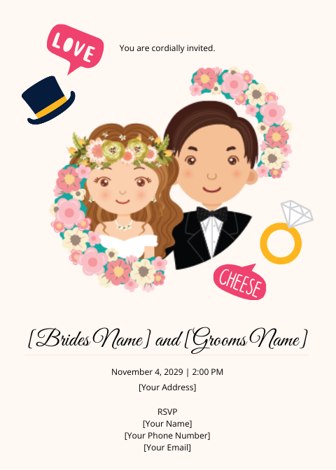 Printable Hand Drawn Bride and Groom Wedding Invitation Suite Templates