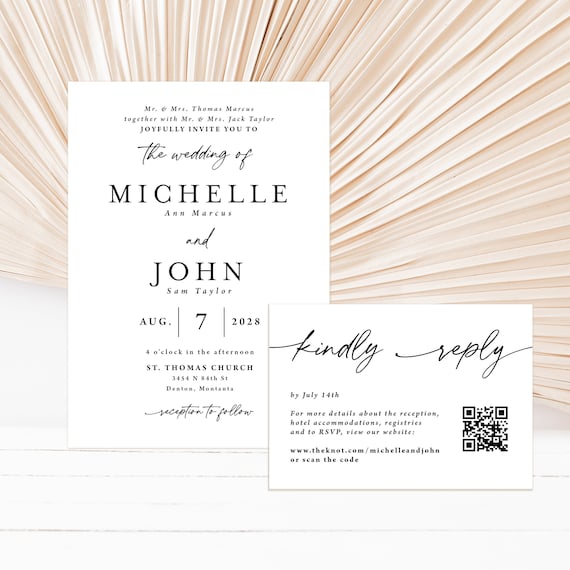 Simple Wedding Invitation with QR code Printed black and white