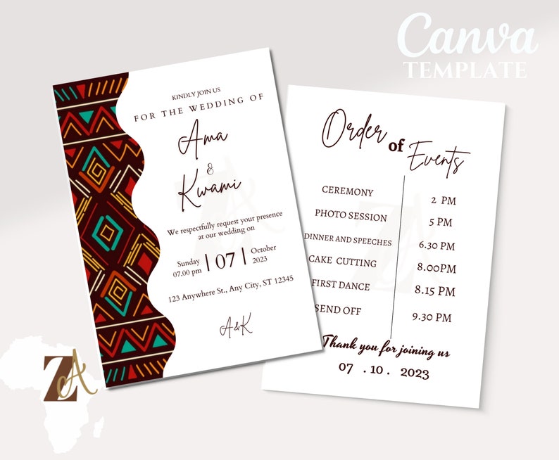 Wedding invitation Timeline template Order of Events Ghanaian in