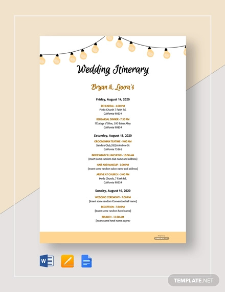 FREE 16 Sample Wedding Itinerary Templates in PDF MS Word Pages