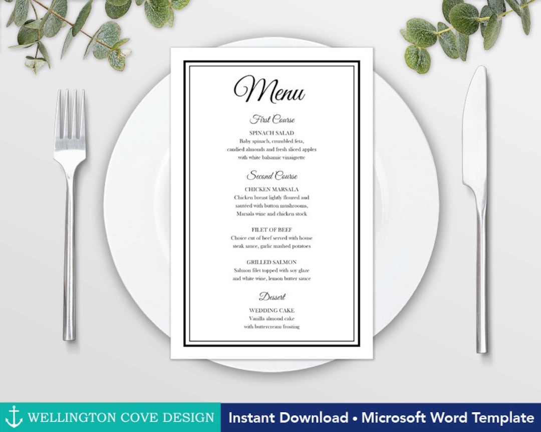 Wedding Menu Template Word