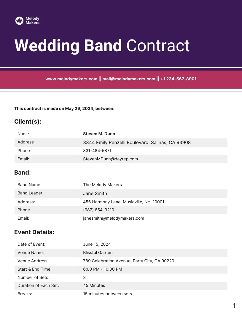 Here are some of the images for Wedding Musician Contract Template that we found in our website database.