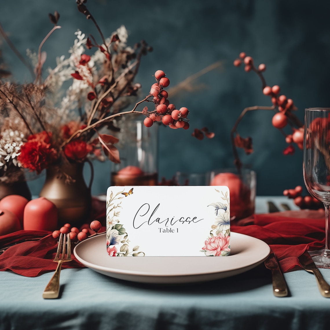 Wedding Name Card Template Spring Floral Place Setting Dainty Seating