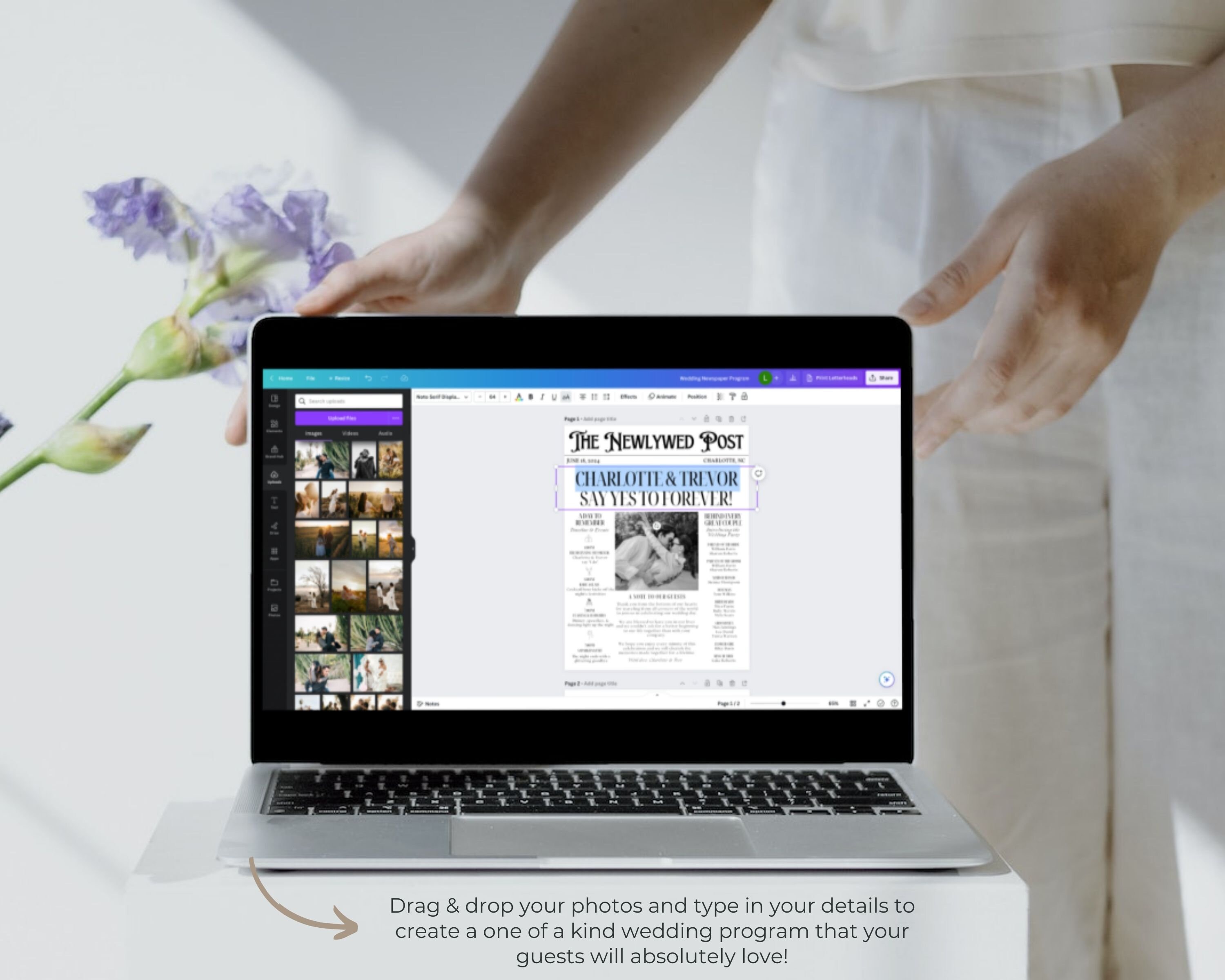 Editable Wedding Newspaper Program Template canva Large Newspaper