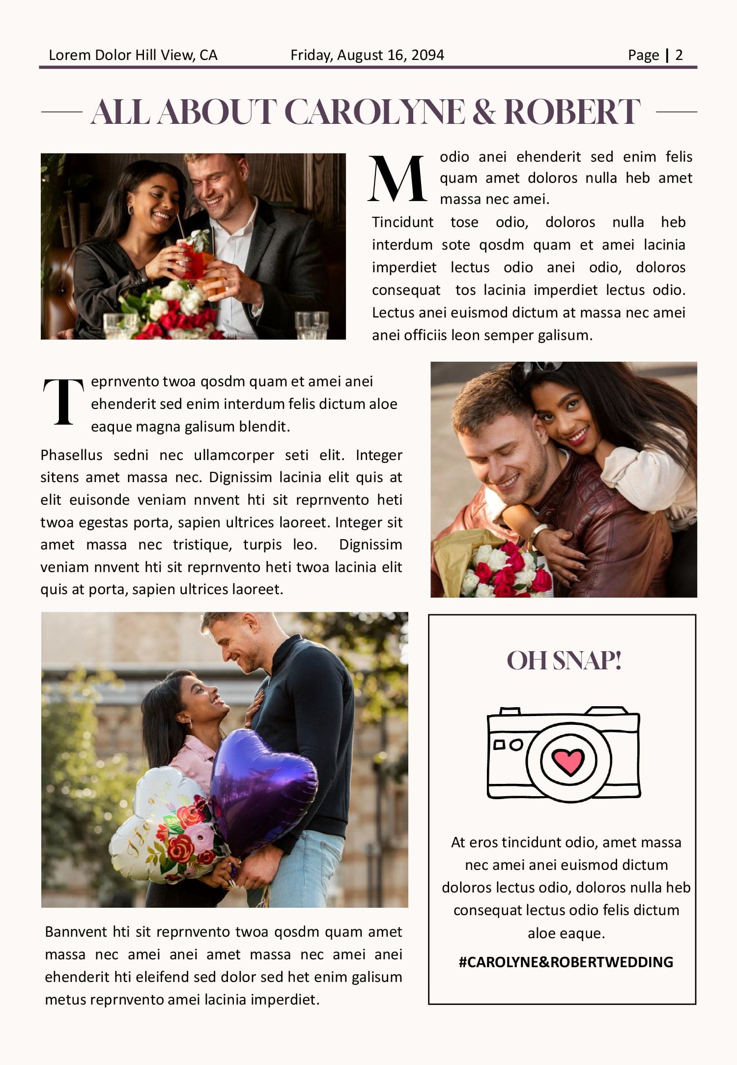 4 Page Wedding Newspaper Program Template Editable Large Newspaper