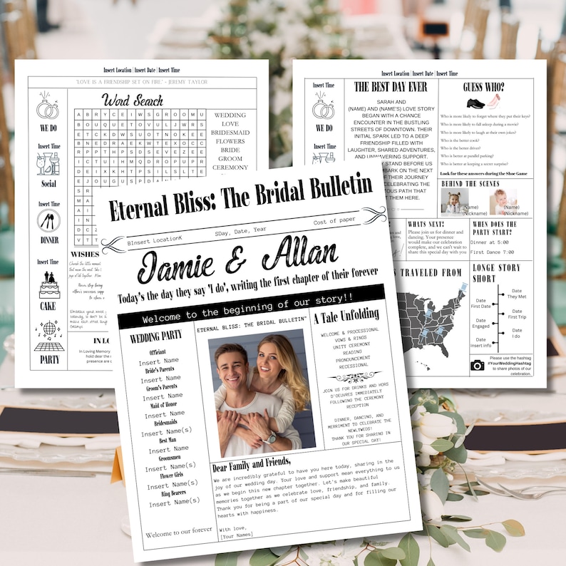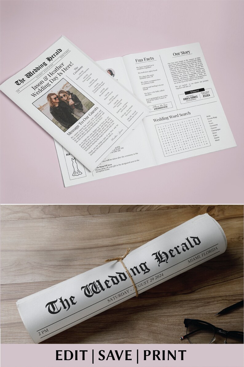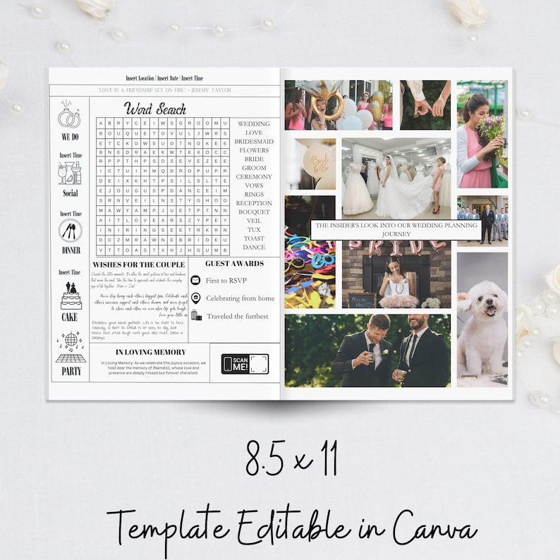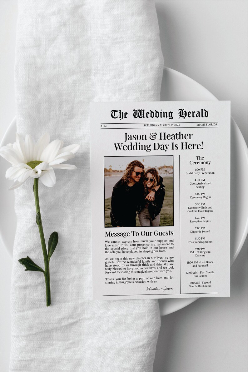 Newspaper Wedding Program Template Edit on Canva Fully Editable