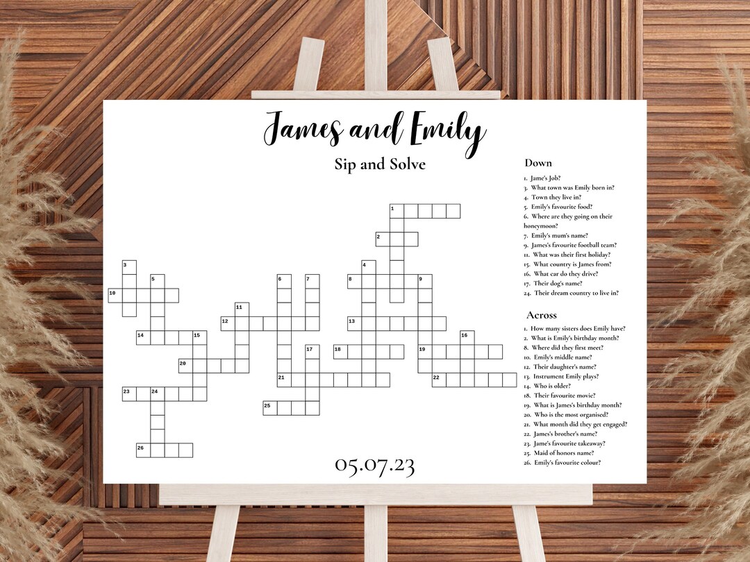 Custom Wedding Crossword Puzzle Large Sip and Solve Crossword for