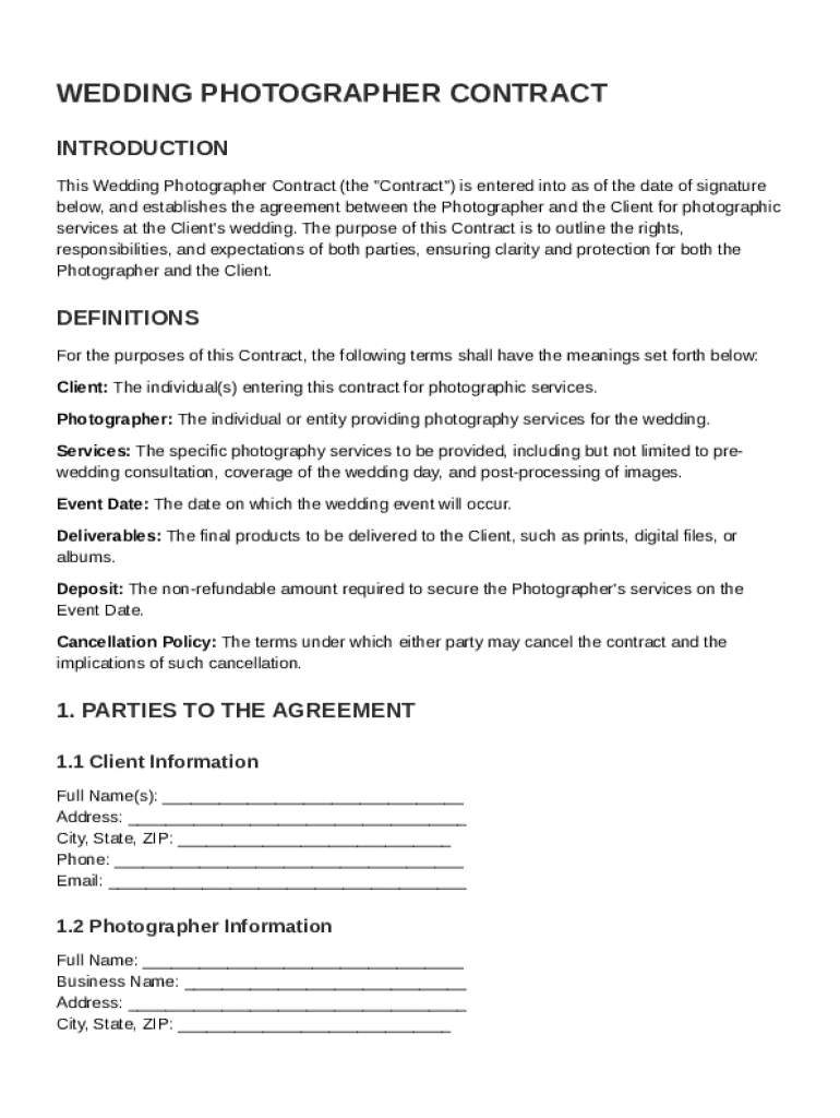 Wedding Photographer Contract Template: Fill out sign online DocHub
