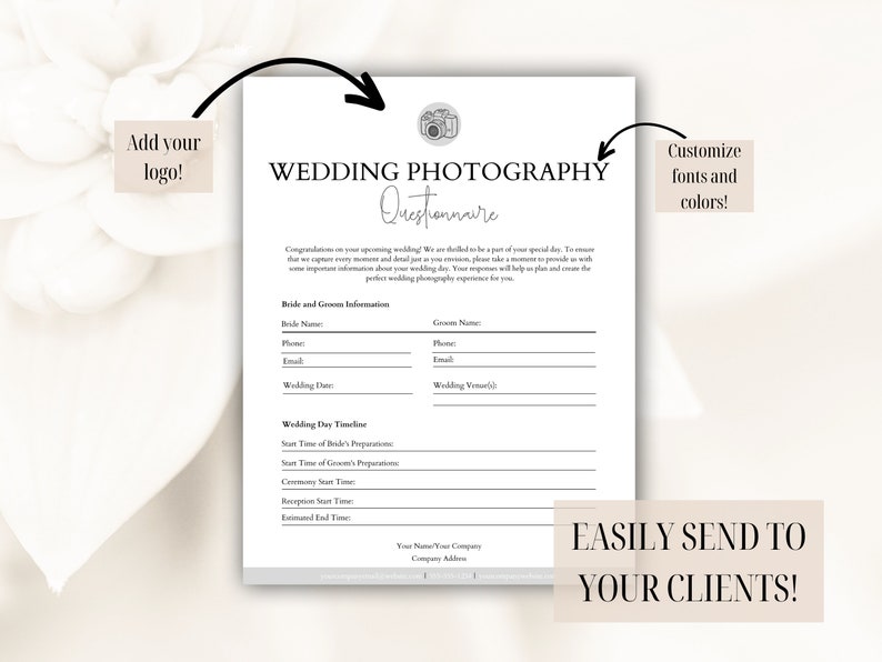 Editable Wedding Photography Questionnaire