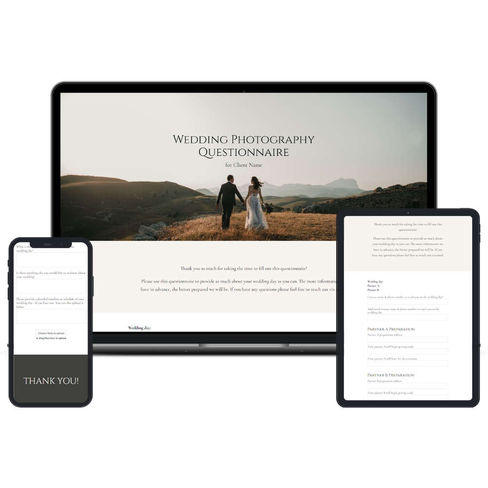 Wedding photography questionnaire template for photographers